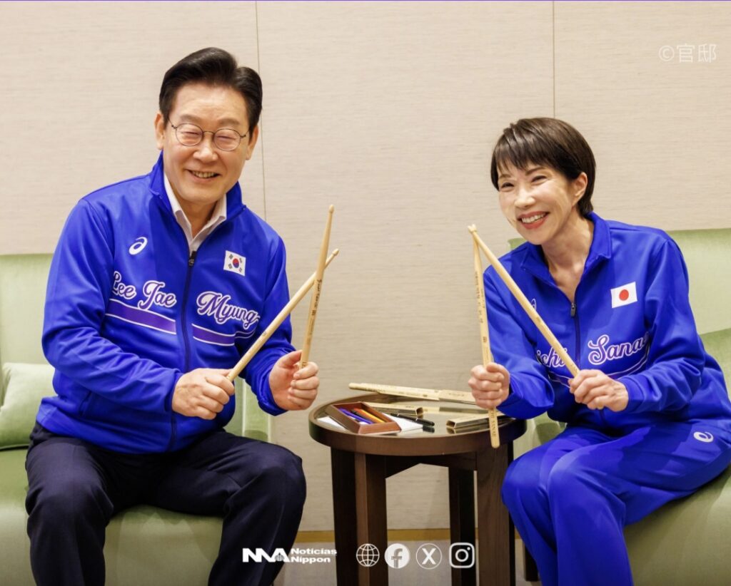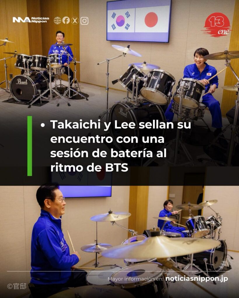Tras su reunión oficial, la primera ministra japonesa Takaichi Sanae y el presidente surcoreano Lee Jae-myung compartieron un momento inusual y profundamente simbólico: se sentaron juntos frente a un set de batería y tocaron como un pequeño dúo improvisado. La iniciativa fue un “regalo sorpresa” del lado japonés, conocedor de la afición musical de Takaichi, quien desde hace años practica la batería como pasatiempo personal.