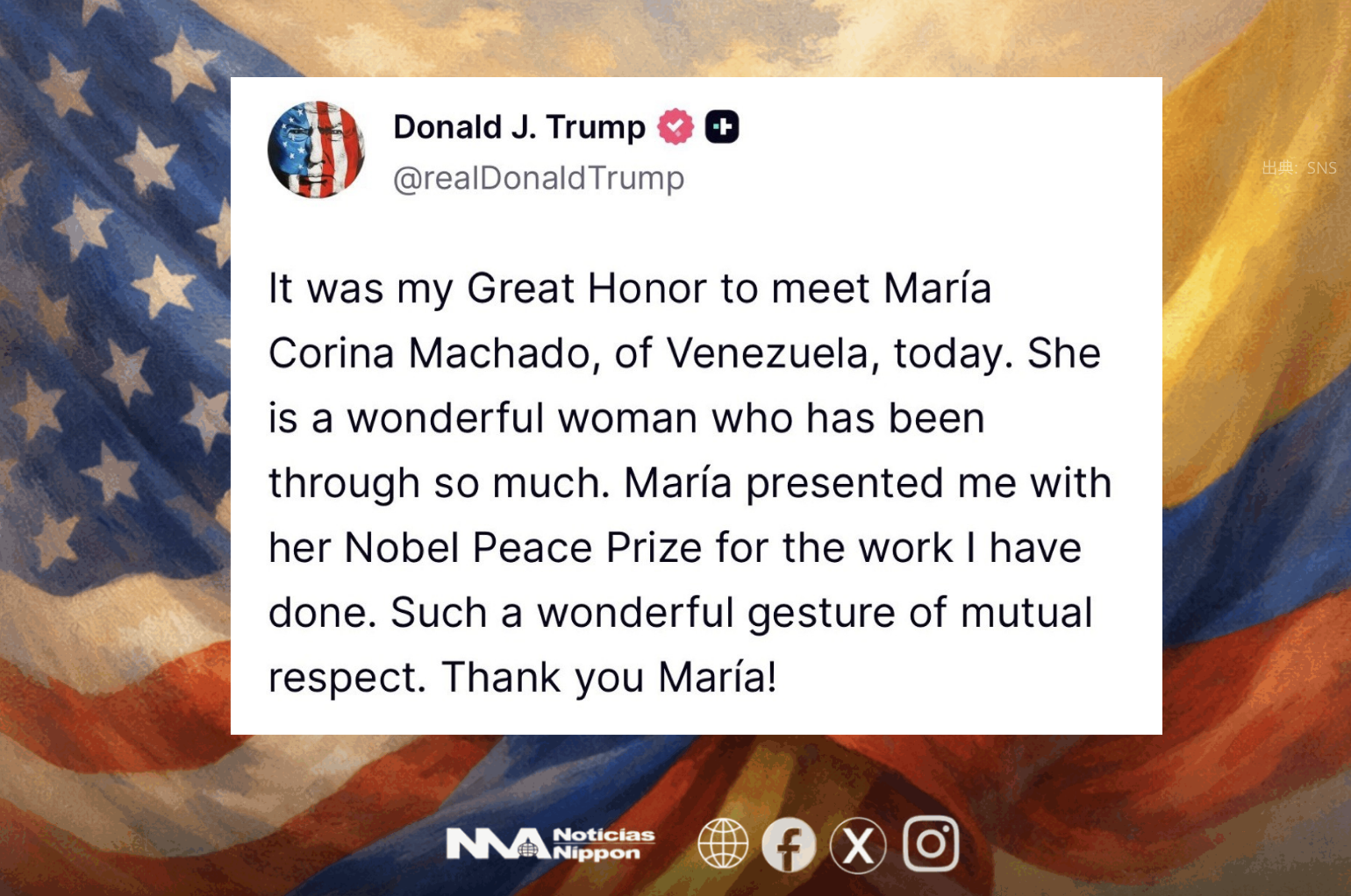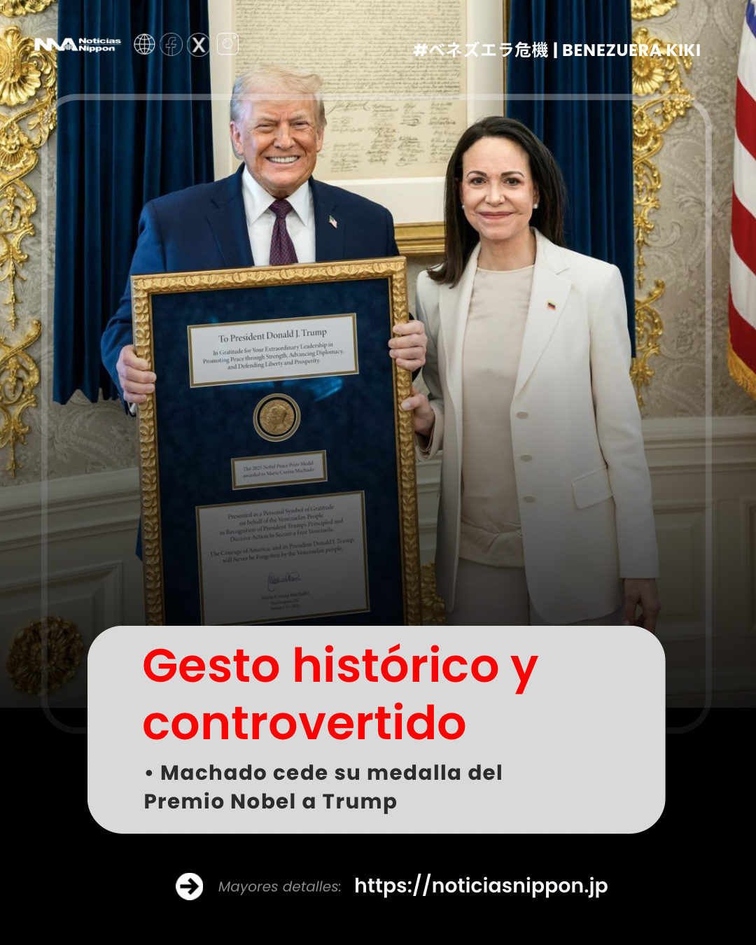 Tras la reunión, Trump difundió un mensaje en redes sociales en el que aseguró que Machado le entregó de manera simbólica su medalla del Premio Nobel de la Paz. Según el exmandatario, el gesto representó un reconocimiento al trabajo que él ha realizado y una muestra de respeto mutuo entre ambos líderes.