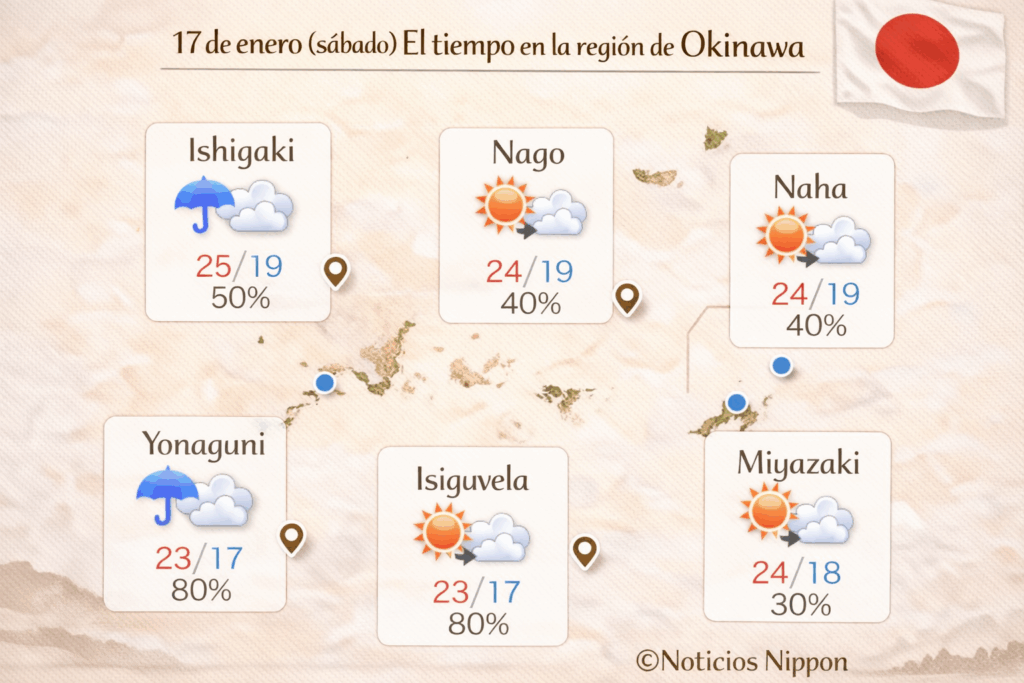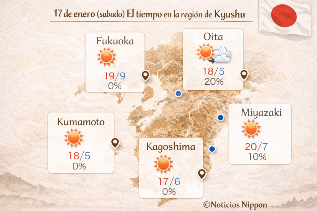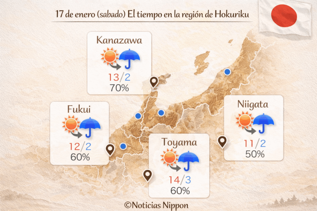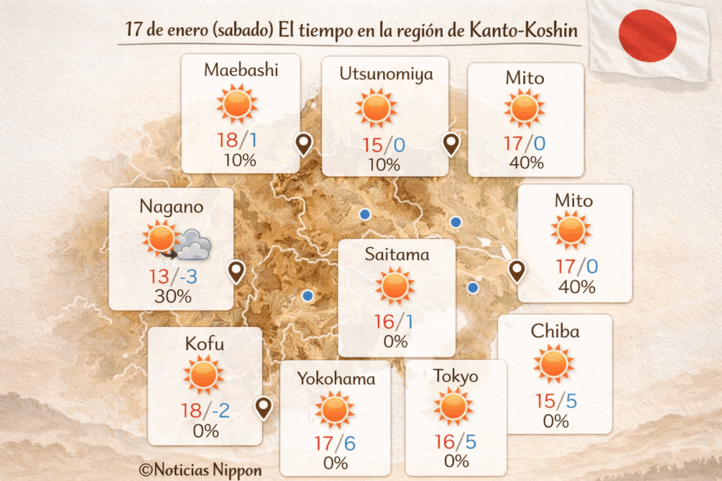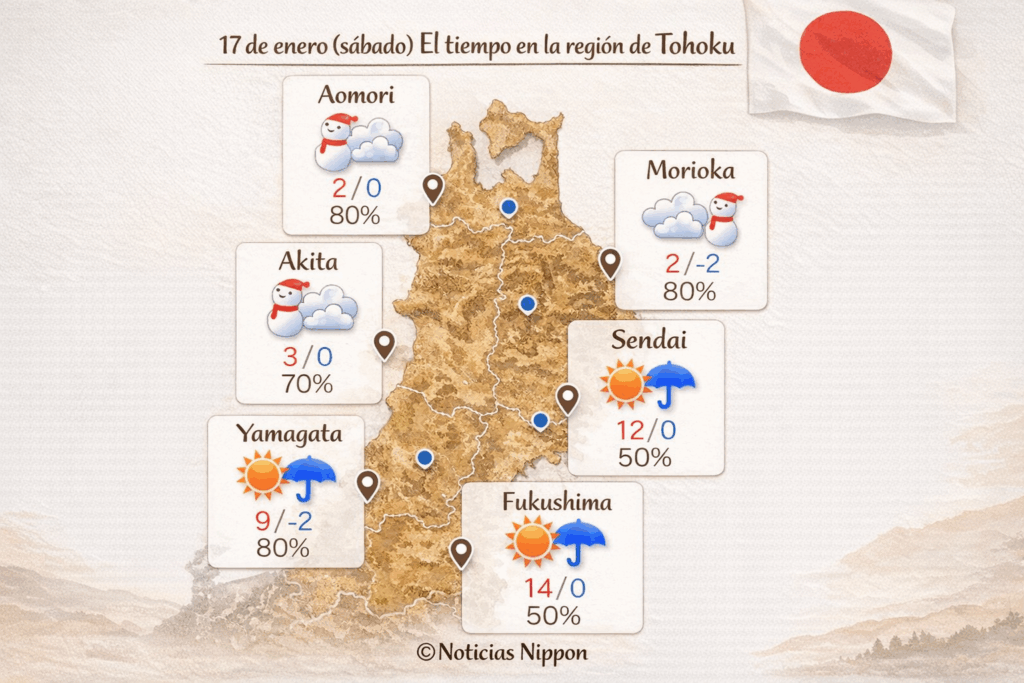 Japón amanece este sábado bajo un escenario climático de fuertes contrastes, como si el país estuviera dividido en distintas estaciones al mismo tiempo. En el extremo norte, el invierno se impone con claridad: el frío es intenso, las temperaturas caen bajo cero y el ambiente recuerda que Hokkaidō ya se encuentra en pleno dominio de la estación más dura del año.