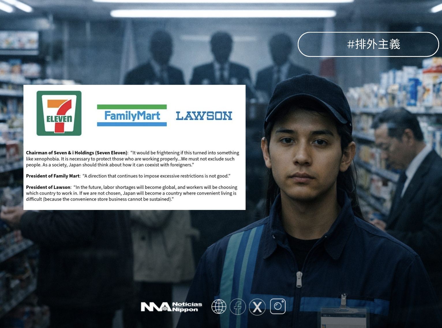 En los pasillos iluminados de los konbini —abiertos 24 horas, refugio cotidiano de estudiantes, ancianos y trabajadores nocturnos— se libra hoy un debate que va mucho más allá de las cajas registradoras. La política de endurecimiento migratorio impulsada por el gobierno de Takaichi Sanae ha encendido una alarma inesperada: no en ONG ni en universidades, sino en la cúpula de las mayores cadenas de tiendas de conveniencia del país.