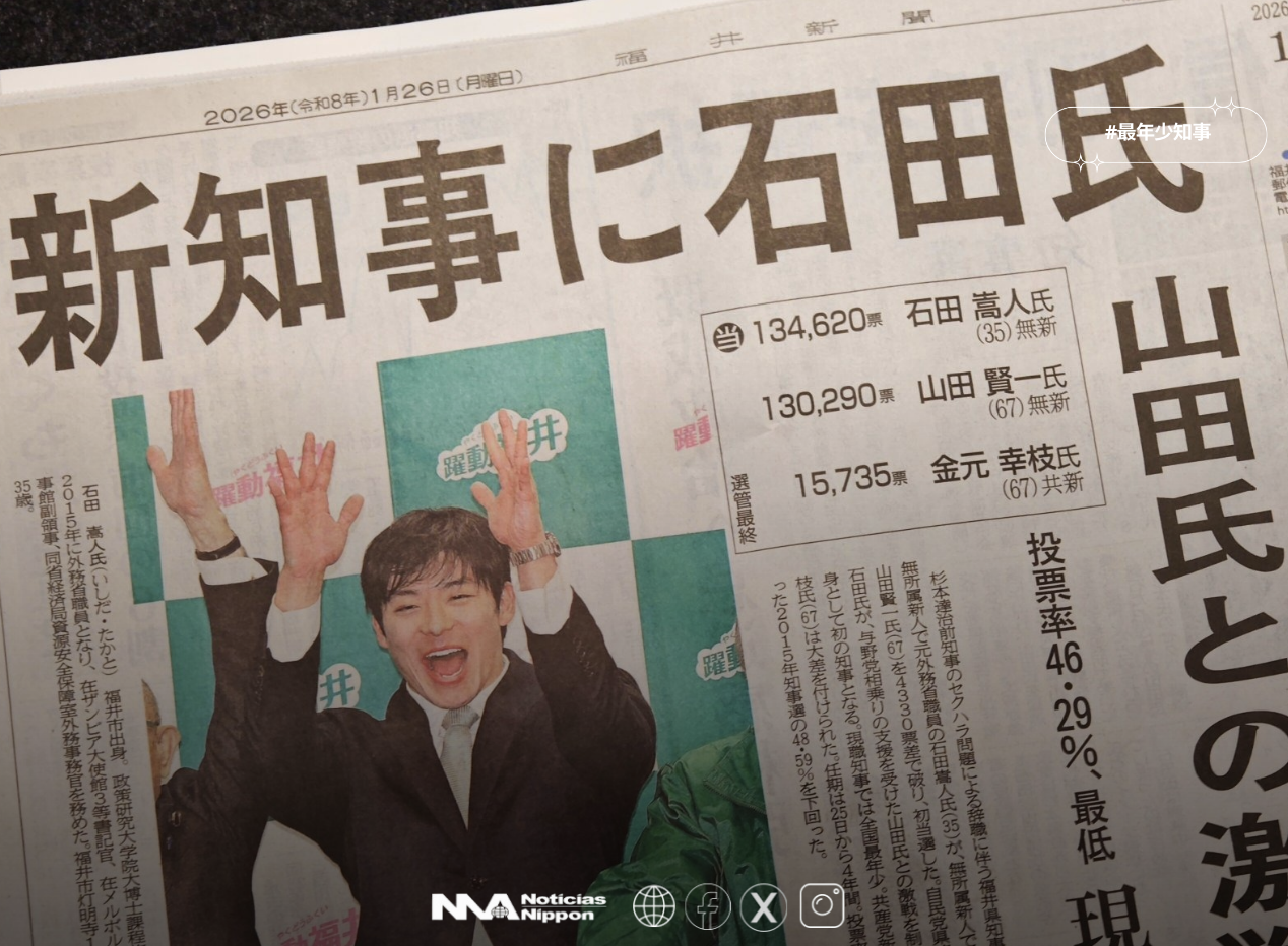 Japón amaneció con un nuevo símbolo generacional y político: Ishida Takato se convirtió en el gobernador más joven de la historia de Prefectura de Fukui. Su victoria no solo marca un relevo etario, sino que traza una línea ideológica nítida en un país que observa con atención los vientos que llegan de fuera.