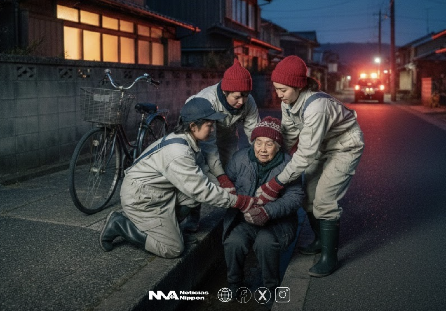 En una oscura acequia de un barrio de Kumamoto, una mujer mayor llevaba horas atrapada, herida, con el frío calándole los huesos. Su voz, débil pero insistente, repetía una sola palabra: “Ayuda… ayuda…”.