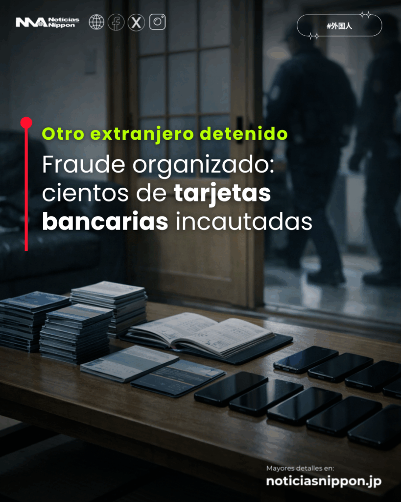 Según la investigación, el sospechoso habría actuado como dashiko (出し子), el eslabón que mueve el dinero dentro de las redes de tokushu sagi (estafas especiales). La policía no ha revelado si el detenido admite o niega los cargos. Lo que sí mostró fueron los rastros materiales: unas 550 tarjetas y 40 libretas a nombre de terceros, además de alrededor de 10 smartphones incautados en la vivienda donde entraban y salían varias personas. Para los investigadores, ese flujo humano refuerza la hipótesis de un punto de coordinación.