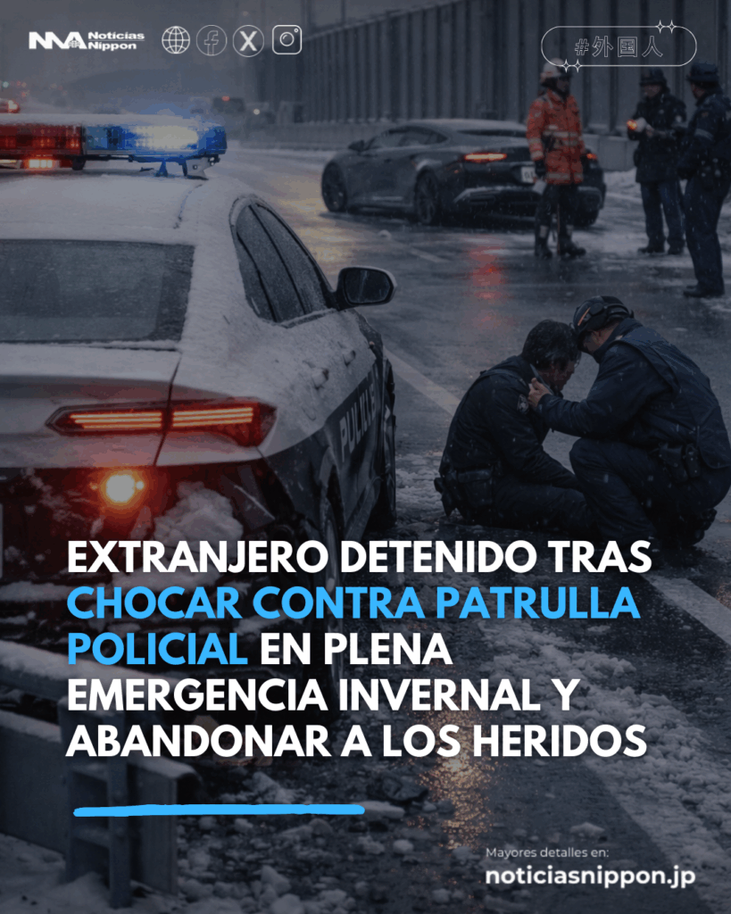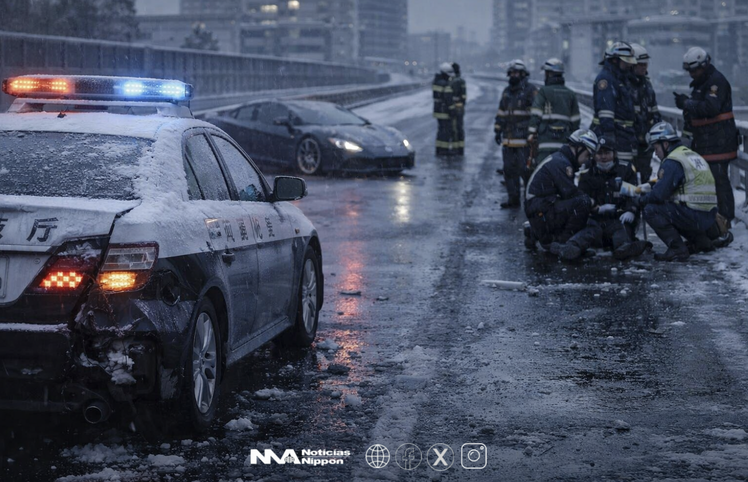 En la madrugada del 8 de febrero, cuando la nieve convertía el asfalto de Tokio en una trampa silenciosa, un grave incidente sacudió el orden público en el distrito de Chūō. Sobre el Puente Tsukiji, un automóvil de lujo Lamborghini impactó violentamente contra una patrulla policial detenida, dejando dos agentes con heridas graves y dándose a la fuga.