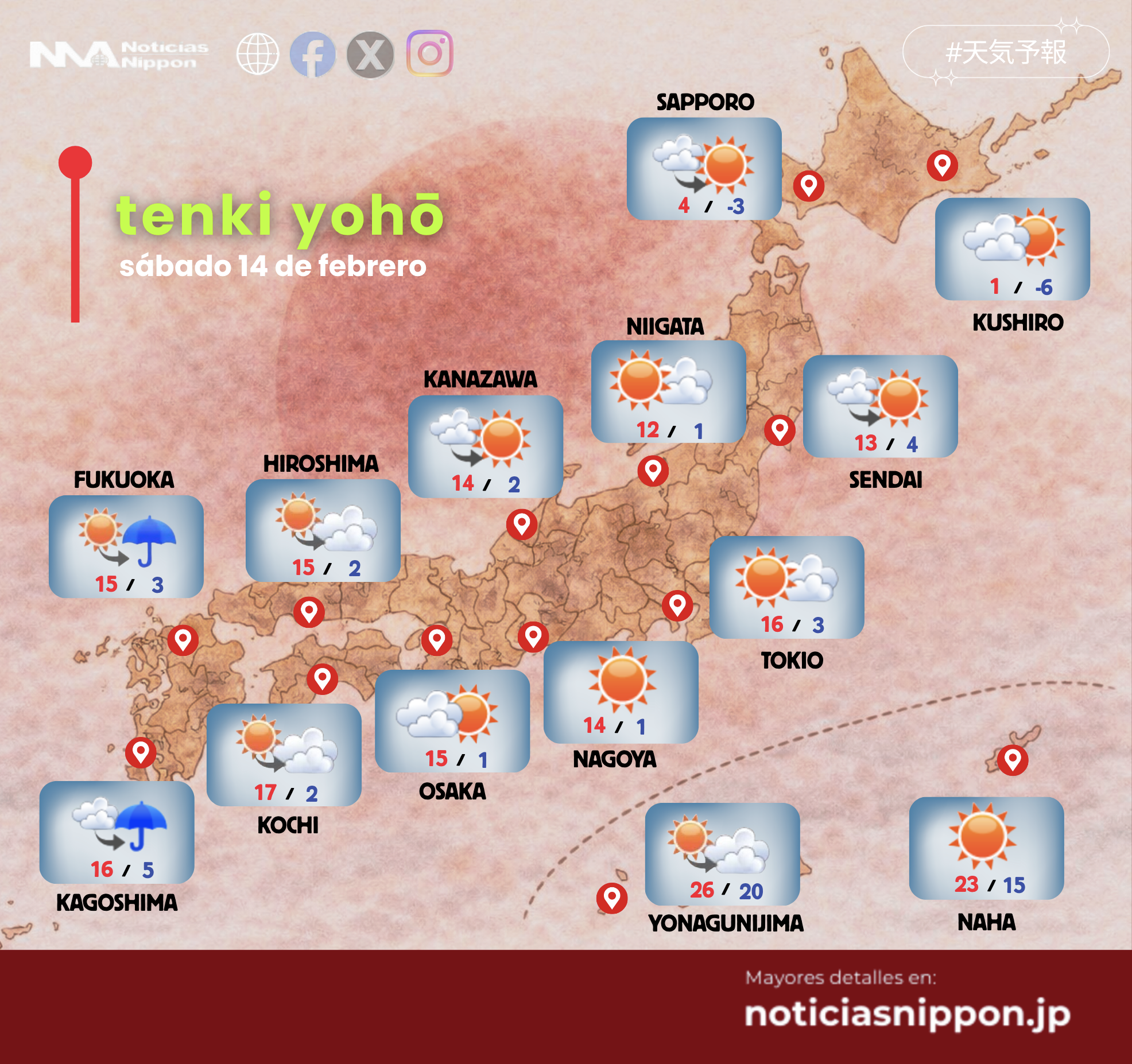 Este sábado Japón vivirá un día marcado por fuertes contrastes térmicos entre el norte y el extremo sur del archipiélago. Mientras Hokkaido seguirá bajo un ambiente invernal riguroso, Okinawa experimentará temperaturas casi primaverales. A continuación, el detalle región por región con explicaciones claras para planificar el día.