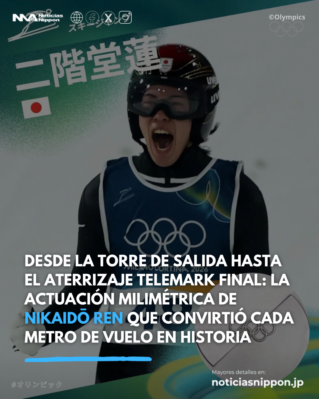 En el noveno día de los Juegos Olímpicos de Invierno de Milano-Cortina 2026, el japonés Nikaido Ren (24 años) logró la medalla de plata en la prueba masculina de salto de esquí individual Large Hill (HS141 metros), disputada en el estadio de Predazzo. Con esta presea, suma tres medallas en un mismo torneo (dos bronces previos en normal hill y equipo mixto), igualando la histórica marca del legendario Funaki Kazuyoshi en Nagano 1998, el mayor número de podios olímpicos logrados por un saltador japonés en una sola edición.