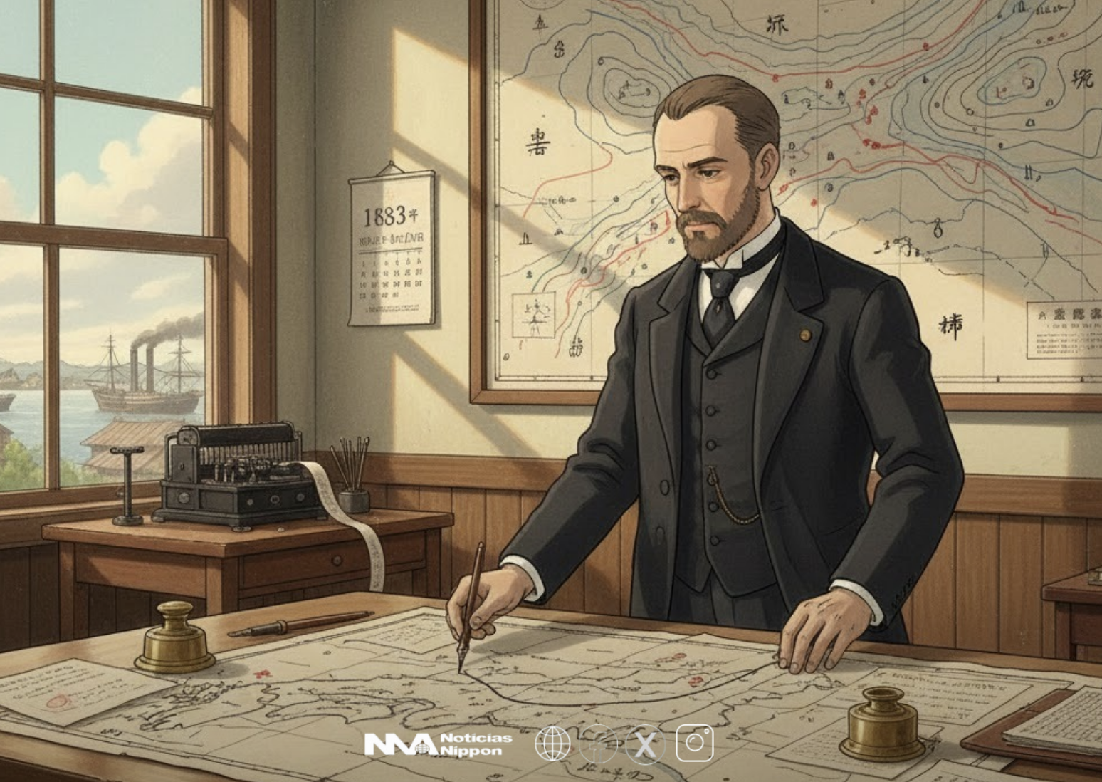 El responsable fue el meteorólogo alemán Erwin Knipping, quien trabajó en Japón durante la modernización científica del país. Knipping no solo dibujó el mapa, sino que también tradujo al japonés el informe meteorológico escrito originalmente en inglés.