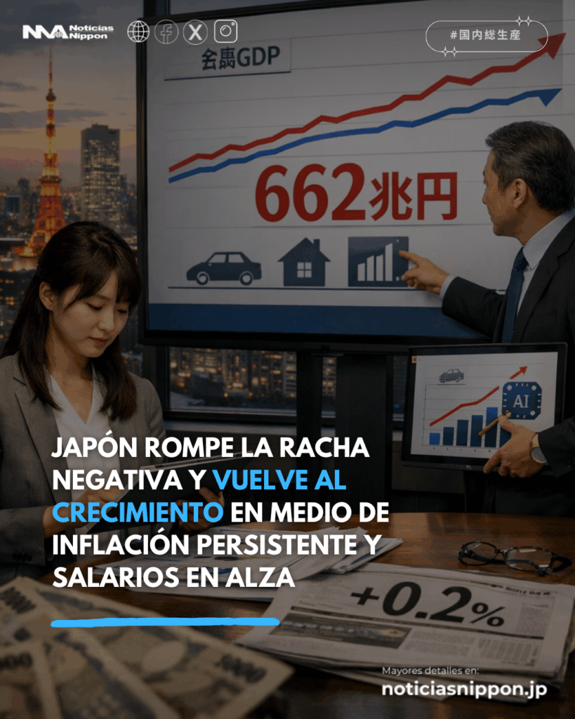Japón vuelve a respirar. Tras meses de incertidumbre, el Gobierno confirmó este 16 de febrero que la economía japonesa registró un crecimiento anualizado del +0,2% en el periodo octubre-diciembre, marcando el primer avance en dos trimestres. Pero el dato más impactante no está solo en el trimestre: el PIB nominal de 2025 alcanzó un récord histórico de 662,7 billones de yenes, acumulando cinco años consecutivos de aumento.