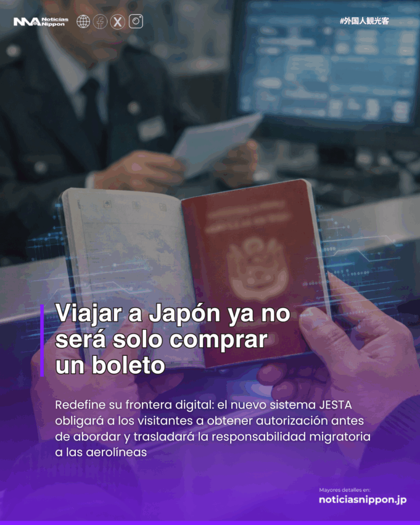 El Gobierno japonés ha definido el núcleo de la reforma a la Ley de Control de Inmigración (入管法改正案) que será presentada en la Dieta extraordinaria. El eje central es la implementación obligatoria del sistema de autorización previa de viaje JESTA(ジェスタ), que exigirá a ciertos visitantes extranjeros obtener una aprobación electrónica antes de abordar un vuelo con destino a Japón.