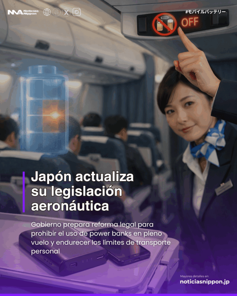 En una decisión que marca un giro en la política de seguridad aérea, el Ministerio de Tierra, Infraestructura, Transporte y Turismo de Japón (MLIT) anunció que avanzará hacia la prohibición del uso de baterías móviles —conocidas como “power banks”— dentro de aeronaves de pasajeros. La medida incluirá límites más estrictos sobre la cantidad de unidades que cada viajero podrá llevar consigo.