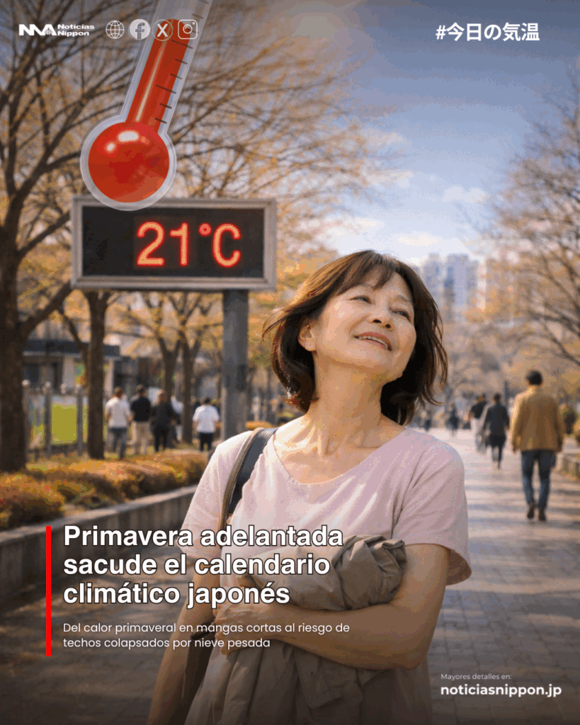 Japón vivió este 24 de febrero una jornada que desdibujó el calendario y confundió al propio invierno. Una masa de aire cálido avanzó desde el oeste y envolvió amplias zonas del país con una atmósfera más propia de marzo o incluso abril. En muchas ciudades, los abrigos terminaron doblados sobre el brazo y las mangas comenzaron a arremangarse tímidamente, como si la primavera hubiera decidido llegar sin previo aviso.