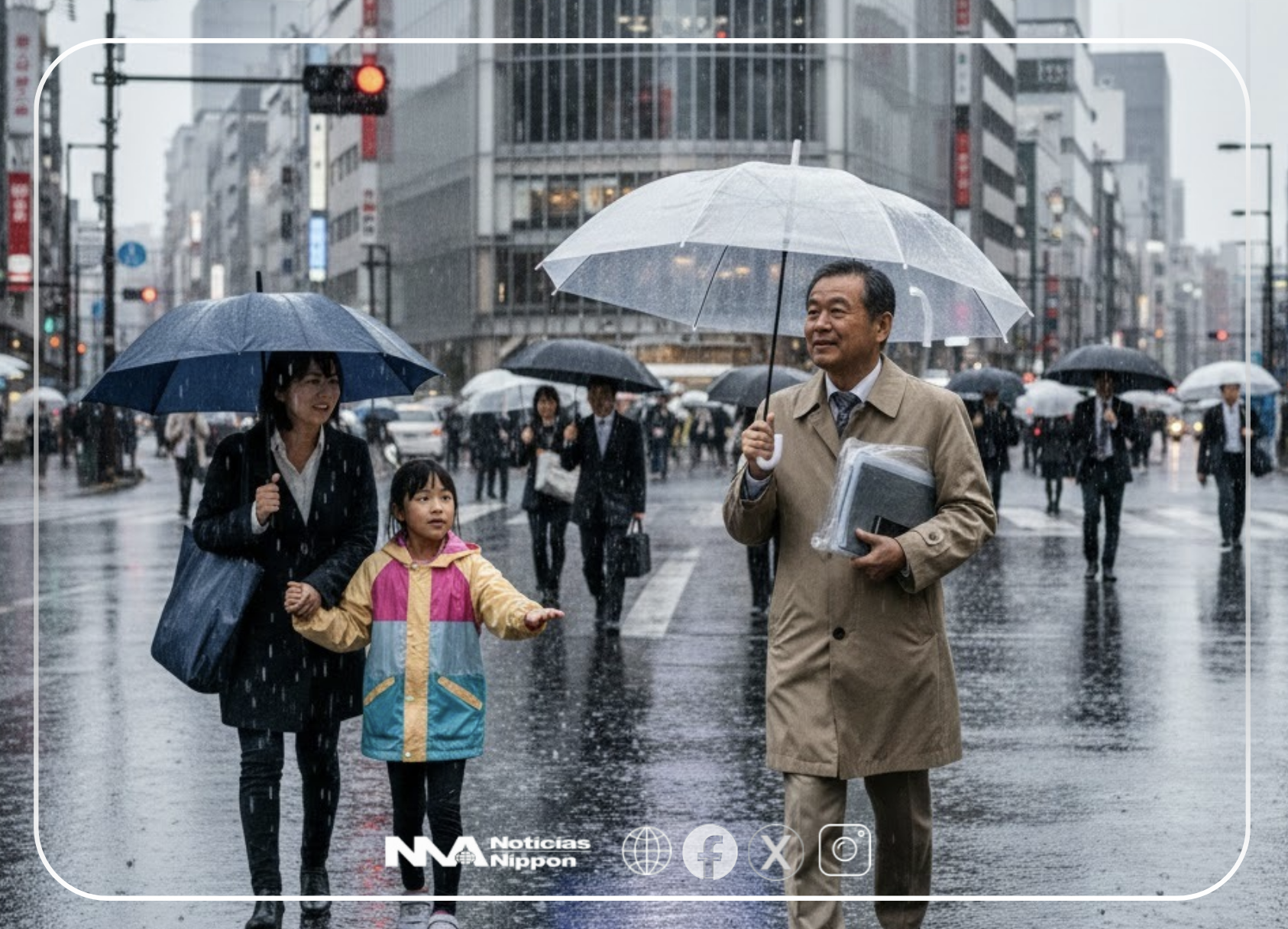En Tokio, las calles brillan mojadas. Los paraguas se abren sin prisa.
