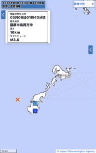 En la madrugada del viernes , un leve sismo sacudió las aguas del mar al oeste de la península de Satsuma, en el extremo sur de Japón, generando un pequeño movimiento perceptible en algunas comunidades insulares de la prefectura de Kagoshima.