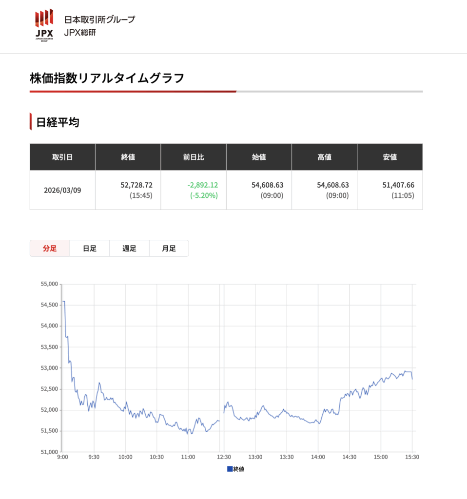 安値 Precio mínimo del día 51,407.66 (11:05)