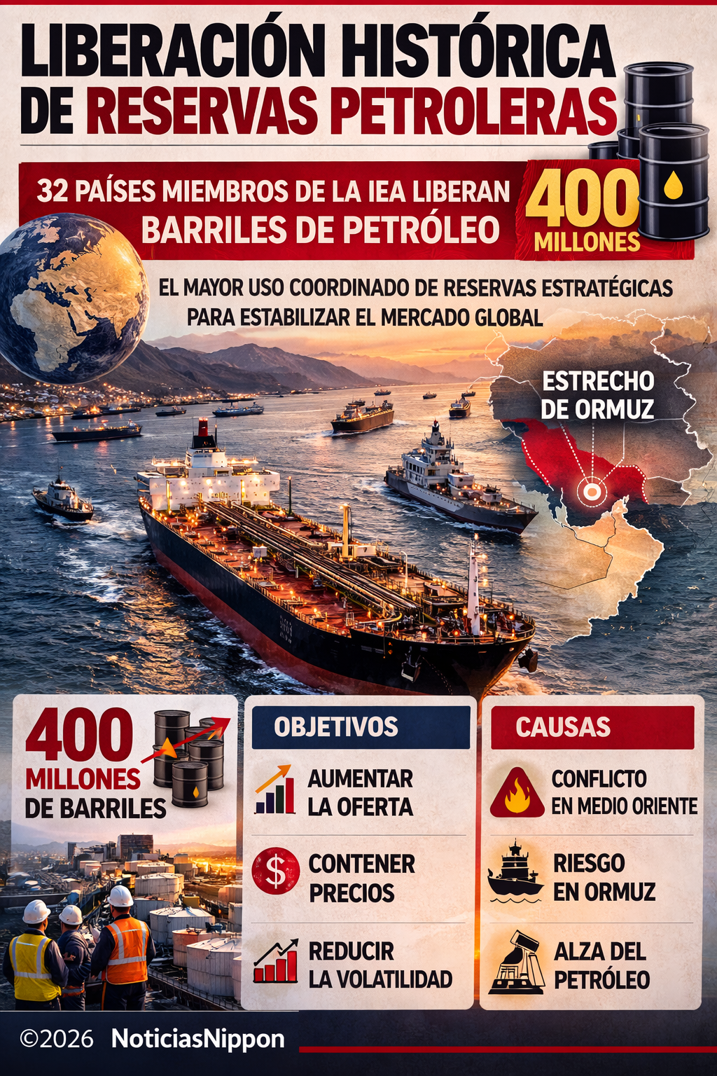 En medio de una creciente tensión geopolítica en Medio Oriente y de las graves perturbaciones en el flujo global de petróleo, los países miembros de la Agencia Internacional de Energía (IEA) anunciaron una decisión sin precedentes: la mayor liberación coordinada de reservas estratégicas de petróleo en la historia del organismo. La medida contempla la salida al mercado de aproximadamente 400 millones de barriles de crudo, una intervención extraordinaria destinada a contener la volatilidad de los precios y evitar una crisis energética global.