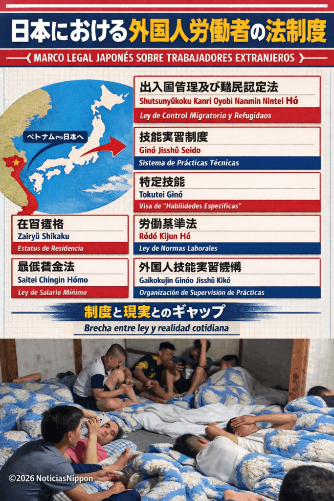 Este marco legal muestra que Japón cuenta con regulaciones formales para proteger a los trabajadores extranjeros, pero en la práctica, sistemas como el 技能実習制度 (ginō jisshū seido) han sido ampliamente cuestionados por generar dependencia laboral, bajos salarios y condiciones difíciles, revelando una brecha entre la ley y la realidad cotidiana.