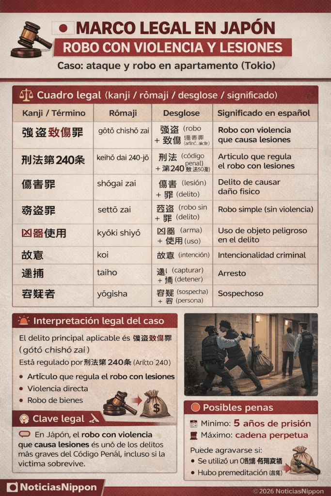 Tras el ataque, el agresor habría sustraído un collar y una tobillera, con un valor total estimado en 880,000 yenes, antes de darse a la fuga. Este detalle refuerza la hipótesis de un crimen con motivación económica.