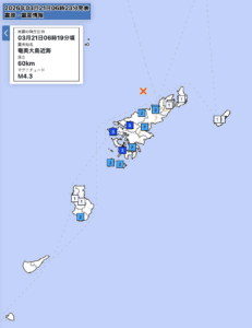 El 21 de marzo de 2026 a las 06:19 a.m., un sismo fue detectado frente a las costas de Amami Ōshima, en la prefectura de Kagoshima.