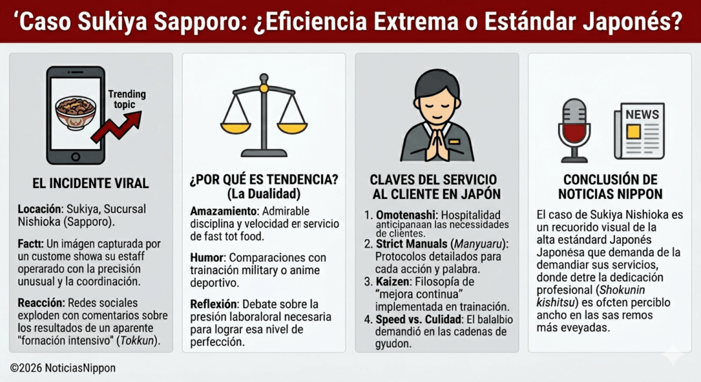 • En la industria de comida rápida: El ritmo es frenético. El «entrenamiento intensivo» que menciona la nota a veces puede ocultar jornadas donde un solo empleado debe hacerse cargo de todo el local (one-ope o «operación individual»), una práctica por la que Sukiya fue duramente criticada y multada en años anteriores.