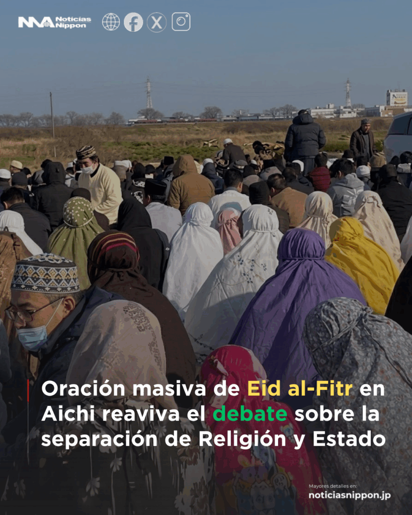Ayer sábado la serenidad habitual de la ribera del río Yahagi, en la ciudad de Nishio, se vio transformada por una imagen inusual: cientos de fieles musulmanes congregados para el Eid al-Fitr. La ceremonia, organizada por la mezquita Darussalam Nishio, ha trascendido lo religioso para convertirse en el epicentro de un intenso debate social sobre la convivencia y la legalidad en el Japón contemporáneo.