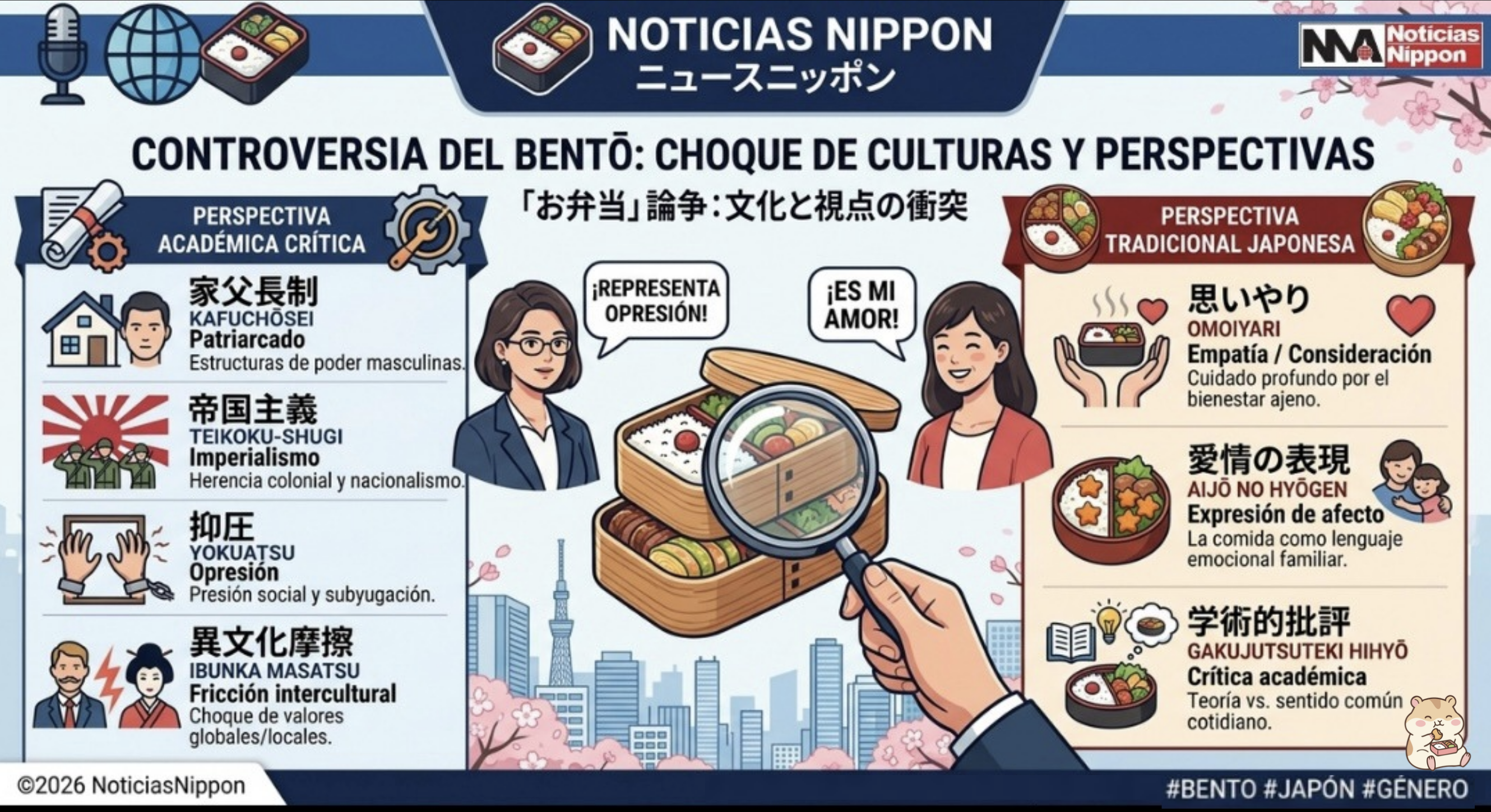 La reciente controversia sobre el bentō y sus supuestas connotaciones de «opresión» ha dejado un sabor amargo que va más allá de un simple debate académico en redes sociales. Lo que parece una crítica aislada desde la teoría de género corre el riesgo de convertirse en un estigma para la comunidad extranjera residente en Japón: el de la desconexión cultural.