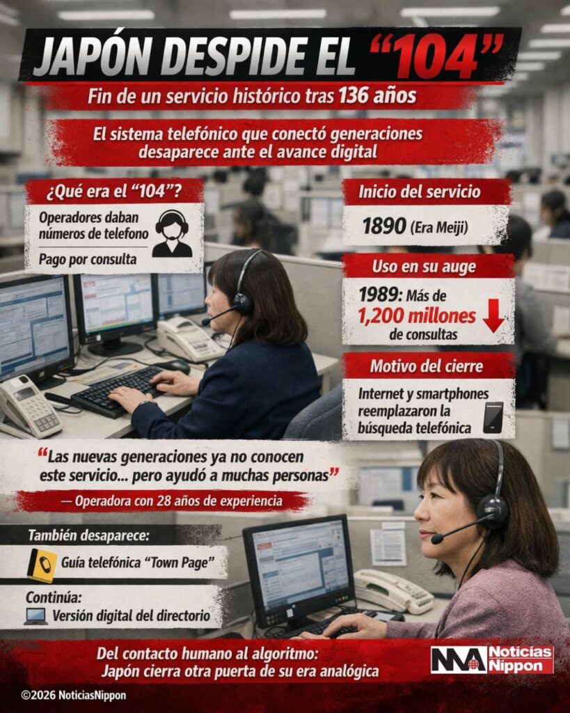 Así, Japón despide discretamente una pieza de su infraestructura social, en una transición que refleja no solo el avance tecnológico, sino también el cambio en la forma en que las personas se conectan. El “104” se apaga, pero su eco permanece como testimonio de una época en la que la voz humana era el puente entre la duda y la respuesta.
