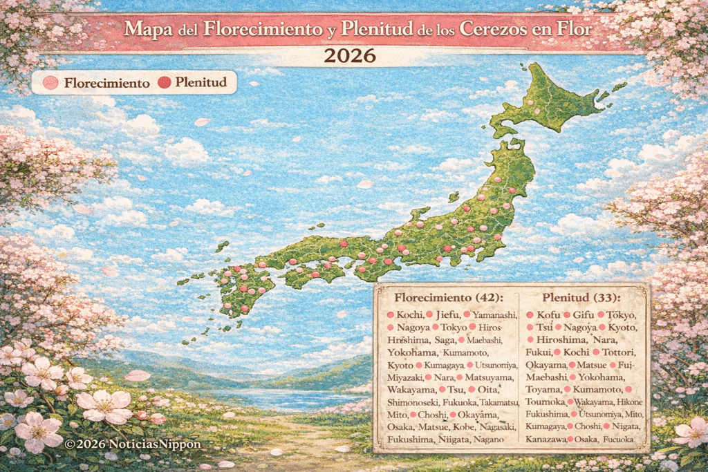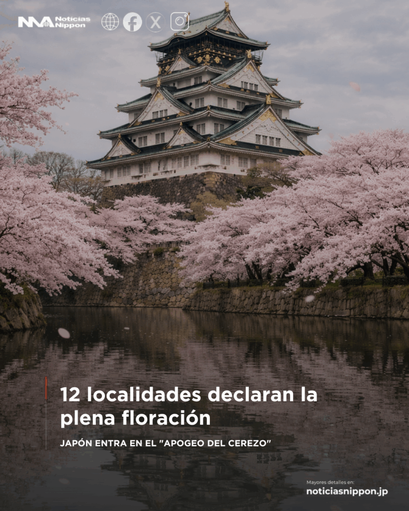 El espectáculo rosado de la primavera alcanzó este viernes 3 de abril su punto álgido en gran parte del archipiélago japonés. Hasta las 17:00 horas, la Agencia Meteorológica de Japón (JMA) confirmó que los cerezos Somei Yoshino han alcanzado la plena floración (mankai) en 12 localidades clave, abarcando desde la región de Tohoku hasta Kyushu.