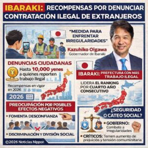 En medio de una creciente tensión social por el rol de los trabajadores extranjeros en Japón, la prefectura de Ibaraki ha encendido el debate nacional con una controvertida propuesta: otorgar recompensas de hasta 10,000 yenes a ciudadanos que denuncien a empresas que empleen mano de obra extranjera en situación irregular. La medida, que entraría en vigor en el año fiscal 2026, busca —según las autoridades— reforzar el cumplimiento de la ley laboral, pero ha sido duramente cuestionada por organizaciones civiles y expertos legales.