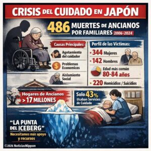 En Japón, donde el envejecimiento avanza a un ritmo histórico, una realidad inquietante comienza a emerger desde el interior de los hogares: el cuidado de personas mayores, tradicionalmente visto como un deber familiar, se está convirtiendo en un factor de riesgo mortal. Un reciente informe del Ministerio de Salud, Trabajo y Bienestar de Japón revela que casi 500 adultos mayores (486 personas) murieron entre 2006 y 2024 como consecuencia de asesinatos, negligencia o abuso cometidos por familiares cuidadores.