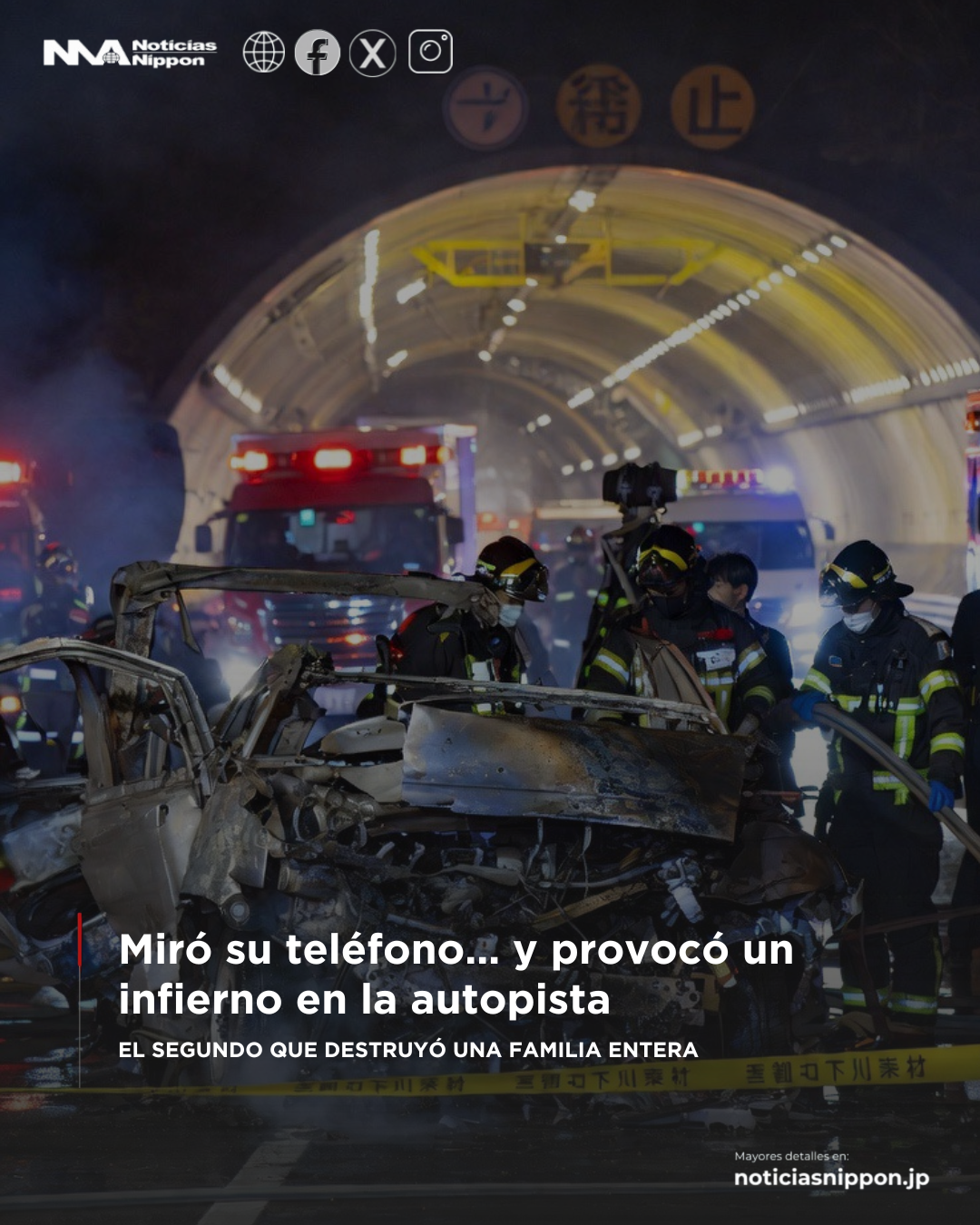 El asfalto aún conservaba el calor de la noche cuando, en la oscuridad previa al amanecer del 20 de marzo, se desató el caos. A la salida de un túnel en la autopista Shin-Meishin, un camión de gran tonelaje embistió violentamente a un automóvil familiar. El impacto no fue solo un choque: fue el inicio de una cadena fatal.
