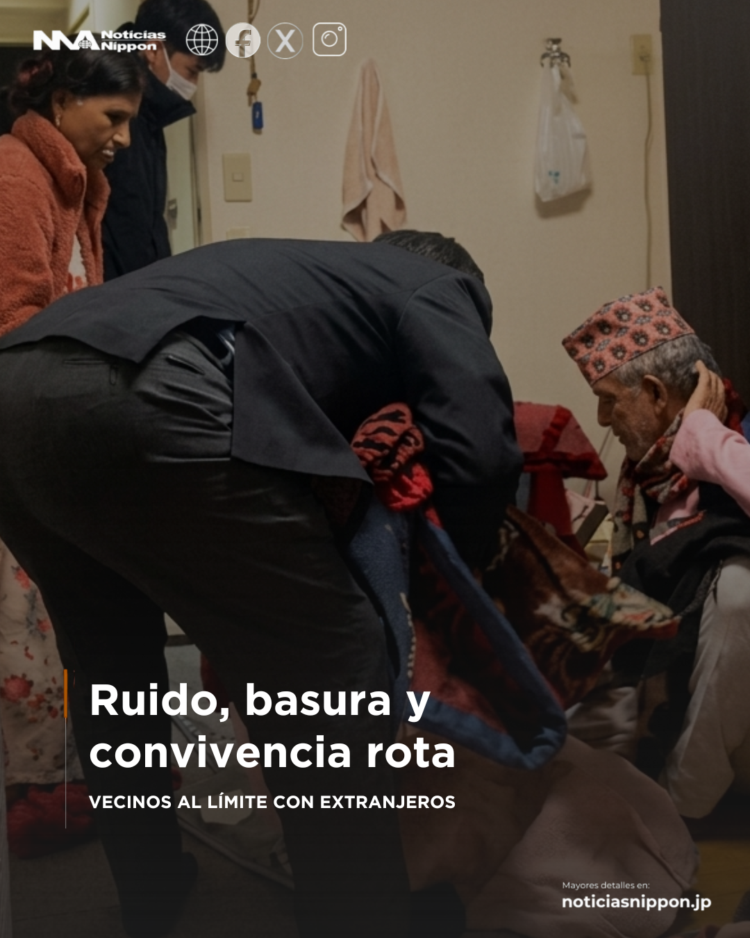Según los reportes, el caso se originó cuando un estudiante extranjero —posiblemente bajo visa de estudiante o de prácticas técnicas— alquiló un departamento tipo 1K, una vivienda diseñada para una sola persona. Sin embargo, posteriormente trajo desde Nepal a varios miembros de su familia, incluyendo padres, hermanos y un bebé, generando una sobreocupación del inmueble.
