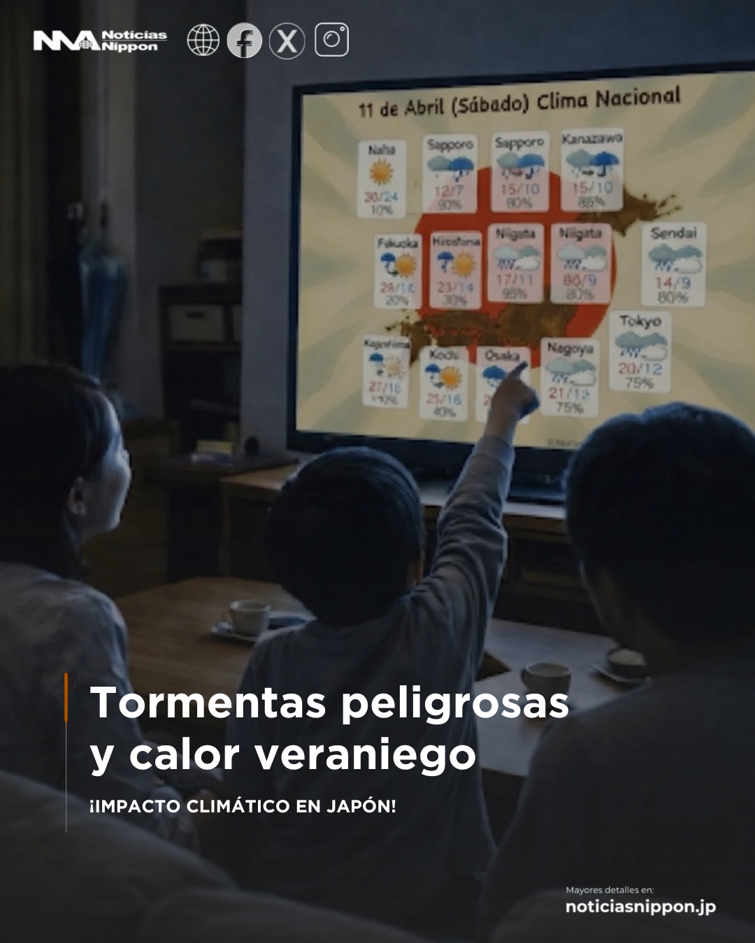 - 🌧️ Norte (Hokkaidō–Tōhoku): lluvias intensas, tormentas y vientos fuertes