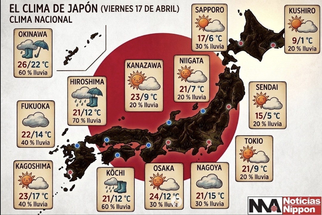 Este viernes, Japón vive una jornada marcada por la transición típica de primavera, donde la estabilidad matinal da paso a condiciones más variables conforme avanza el día.